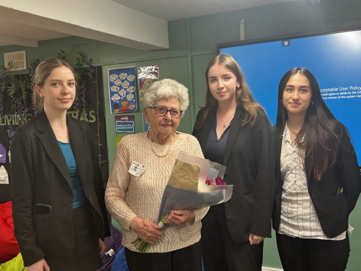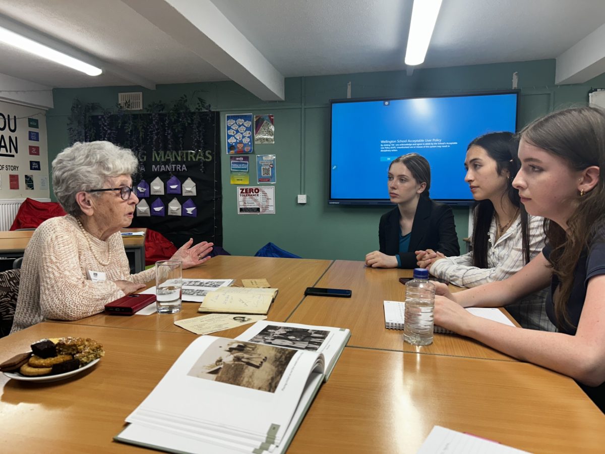 n 16 July Year 12 students at Wellington High School, Timperley had the privilege of meeting and interviewing three Holocaust survivors: Danny Herman, Lady Milena Grenfell-Baines, and Anne Super. Wellington school is part of the The Fed’s My Voice Guardians Project, where every year we select Year 12 students to become the Guardians of a local Holocaust survivor’s story. Pupils learn about each survivor, through reading their My Voice book and then have the chance to meet them to discuss their incredible lives. Jocelyne and Michelle accompanied survivors, alongside volunteer Martin Ailion.